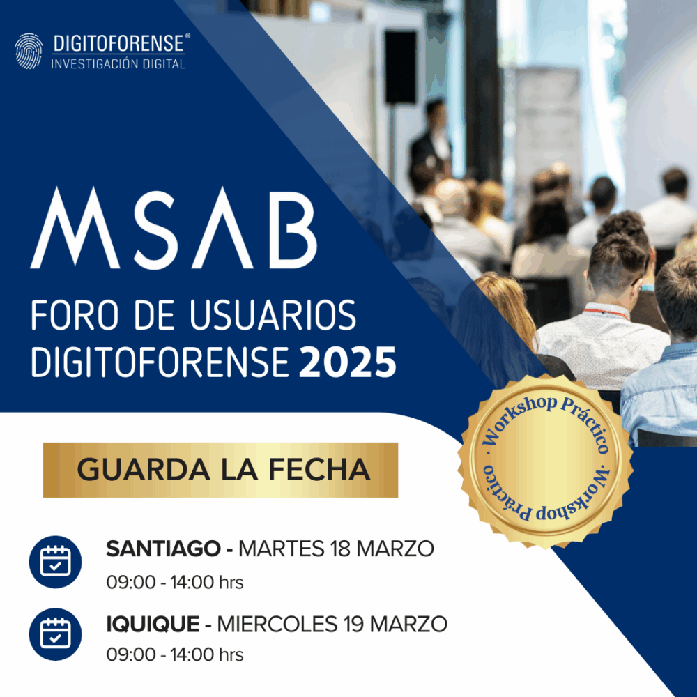 Nos complace invitarlo al MSAB FORO DE USUARIOS DIGITOFORENSE 2025, un evento que se llevará a cabo en Chile, en las ciudades de Santiago e Iquique.