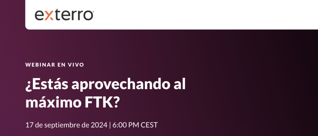Estamos de vuelta con nuestra serie de seminarios forenses en español por parte de Exterro para nuestros colegas de América Latina.