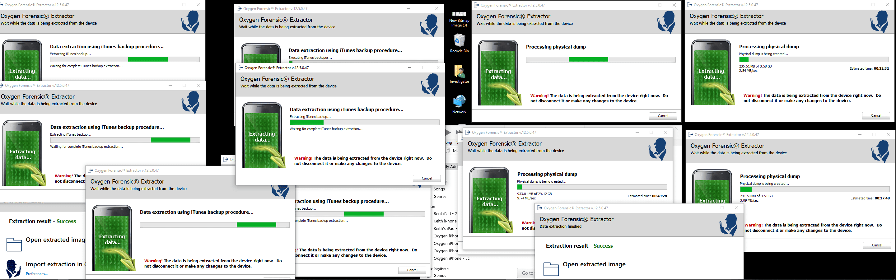 El software de detección forense Oxygen se diferencia del otro software forense líder en teléfonos celulares al permitir extracciones prácticamente ilimitadas a la vez. Ya sea un registro de laboratorio de dispositivos o un evento importante donde 20, 40, 60 testigos o más estarían dispuestos a darle sus dispositivos por un período limitado de tiempo, el Oxigenator es su solución. Detenga las “discusiones” sobre la necesidad de llevar sus dispositivos al laboratorio durante un período de tiempo desconocido.