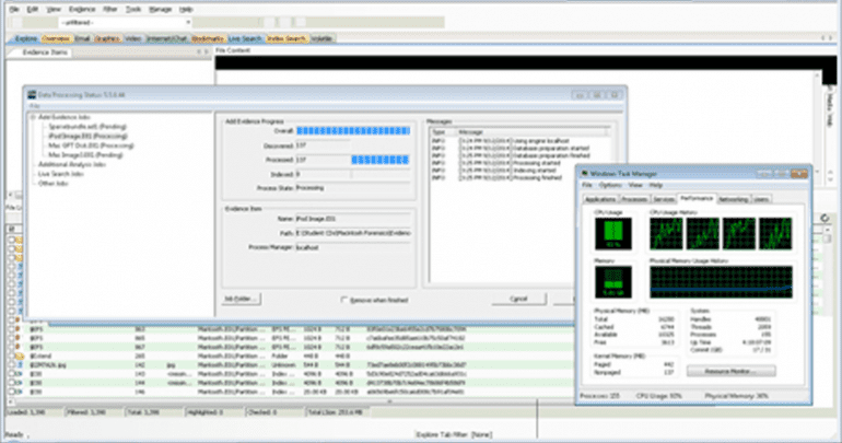 Cree imágenes forenses de disco completo y procese una amplia gama de tipos de datos de muchas fuentes, desde datos del disco duro hasta dispositivos móviles, datos de red y almacenamiento en Internet, todo en una base de datos segura y centralizada. FTK® procesa e indexa los datos por adelantado, eliminando el tiempo perdido esperando que se ejecuten las búsquedas. Reduzca el tiempo de OCR hasta en un 30% con nuestro eficiente motor de OCR.